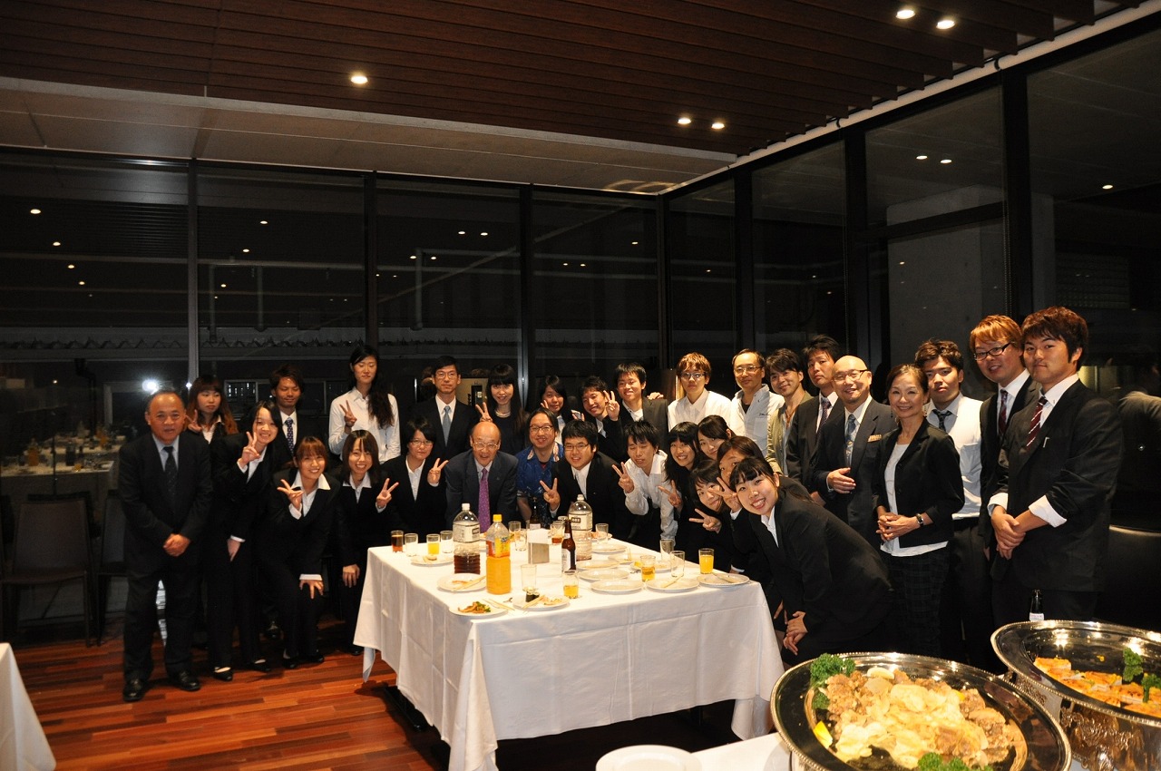 本番が終わった後は大学学長、職員、スタッフ、現役と市音の一部の方々で懇親会が開催されました!今年9月に新たに建設された50周年記念会館にて開催されました(´∇`)