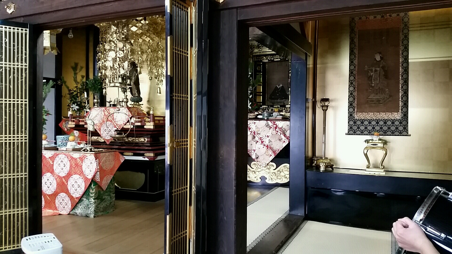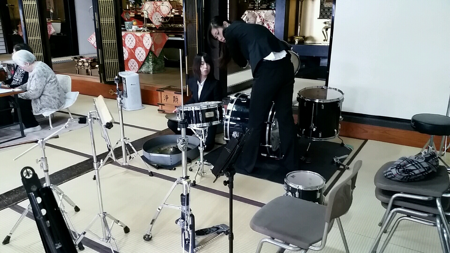 音出しを暖かい控室で行い、お寺で本番!!!